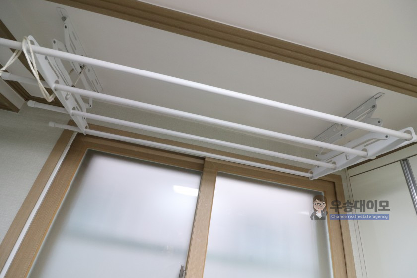 천정에 빨래건조대가 있어 편리합니다.