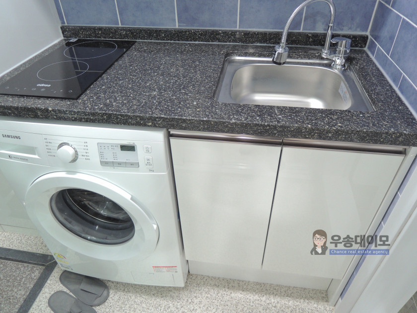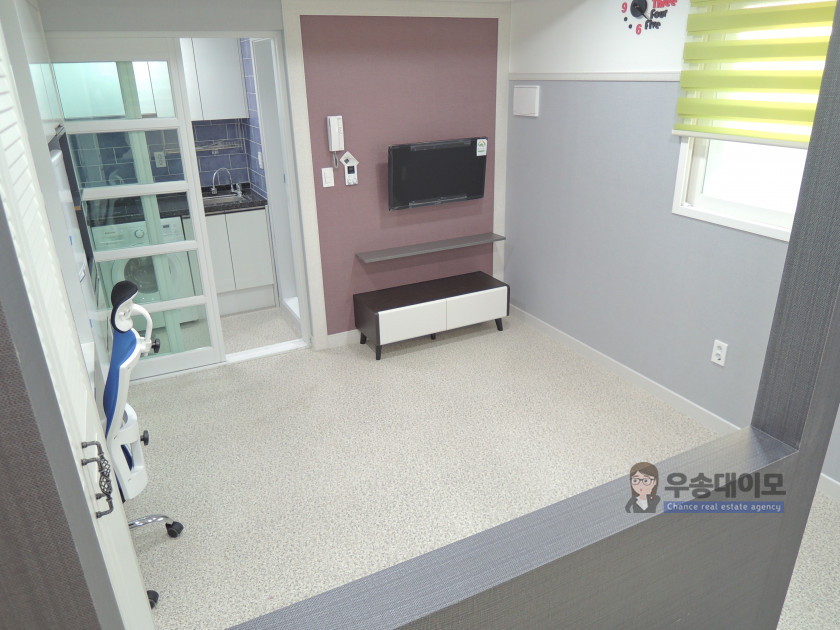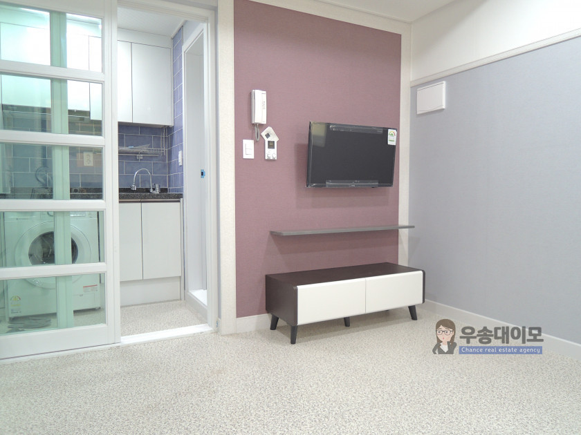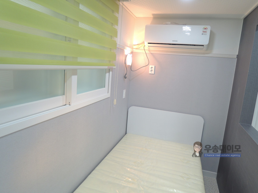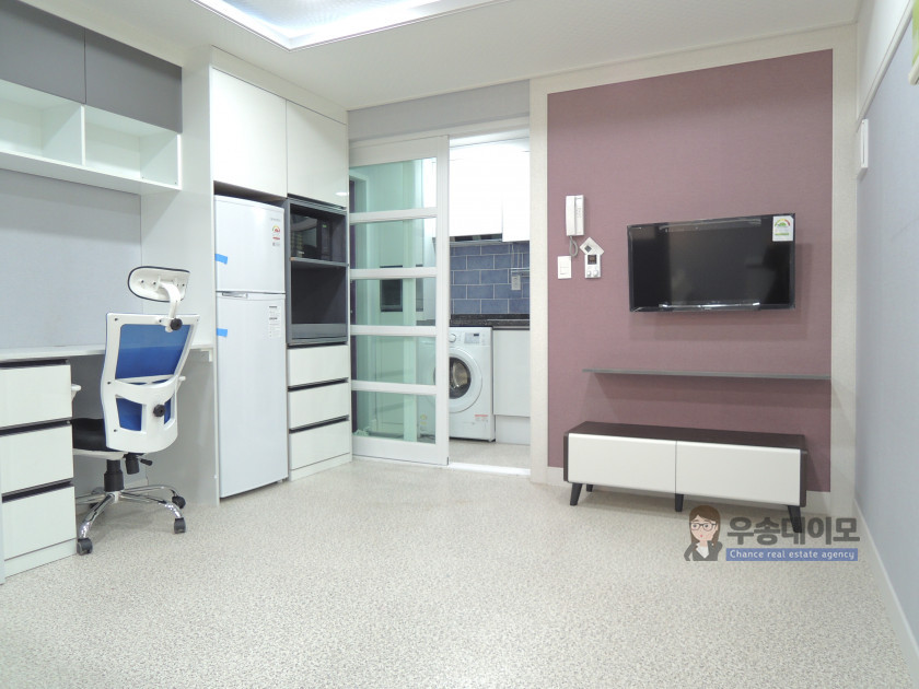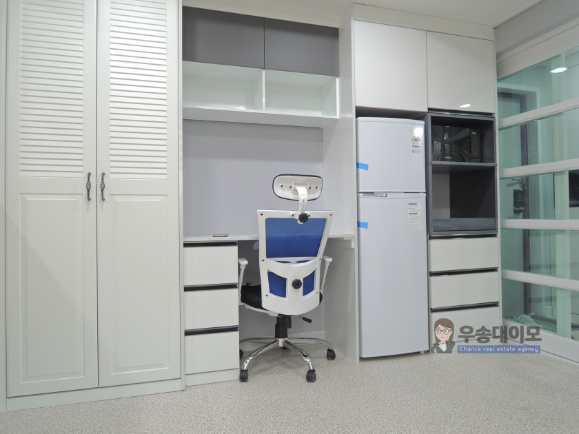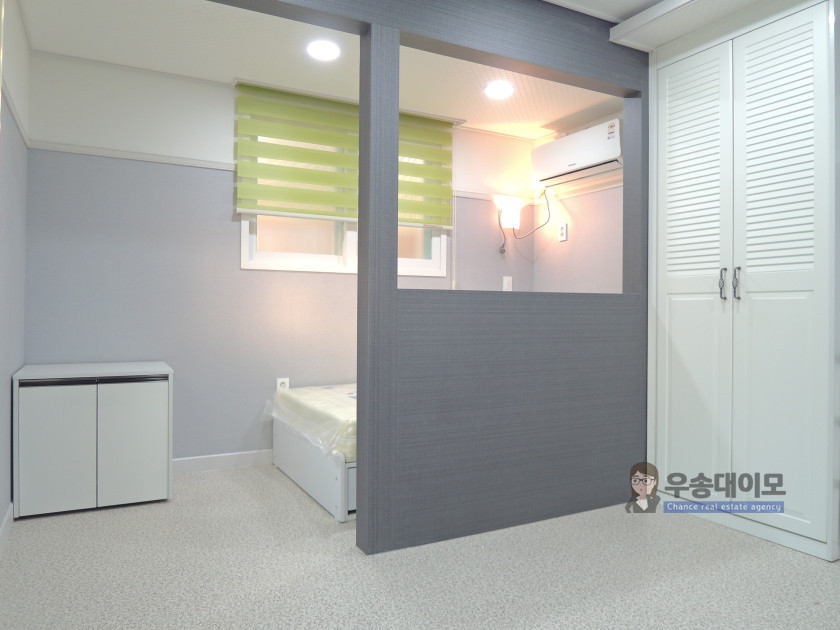 보통 1.5룸 스타일이라고 하는데요~ 침대공간을 파티션으로 막아주어 공간 활용도가 좋답니다.
