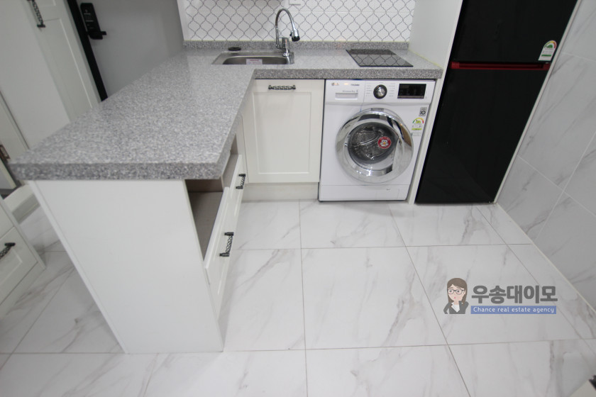특히 부엌이 ㄱ자 구조로 조리공간 확보가 좋고,