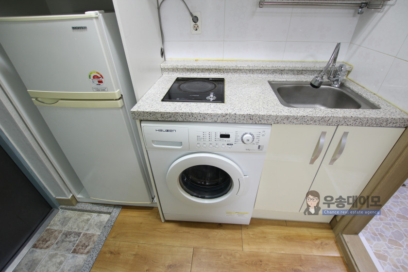 작은 다용도실이 있는 주방 분리형원룸 입니다.
