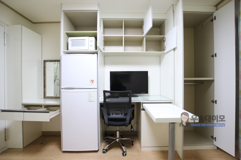깨끗한 톤으로 인테리어가 되어 있는 주방 분리형 원룸 입니다,